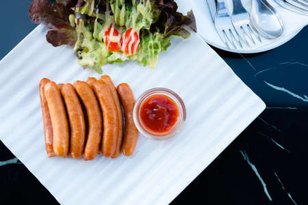 BBQ sausage, food product detail made with pork, food, healthy food, diet