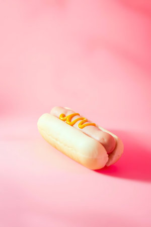 Cheerful hotdog with mustard against a bright pink backdrop! Perfect for food blogs, summer ads, or anything needing a pop of color and fun vibes.