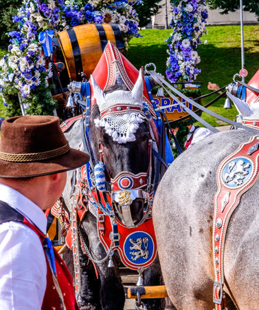 MUNICH, GERMANY - SEPTEMBER 26: brewery horses at the biggest folk festival in the world - the octoberfest on september 26, 2017 in munich.