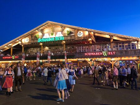 Munich, Germany - October 1: famous beer tent called Ochsenbraterei Spatenbraeu and people at the biggest folk festival in the world - the oktoberfest on oktober 1, 2018 in munich.