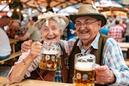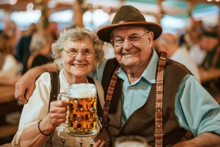 Senior couple drinking beer at Oktoberfest in Munich, Germany