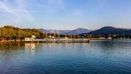 Panorama view at Worthersee lake in Klagenfurt in carinthia, Austria.
