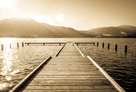 old wooden jetty at the chiemsee lake in bavaria