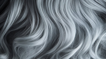 A captivating close-up of soft, flowing silvery hair presenting intricate waves and textures. The play of light enhances its beauty and elegance.