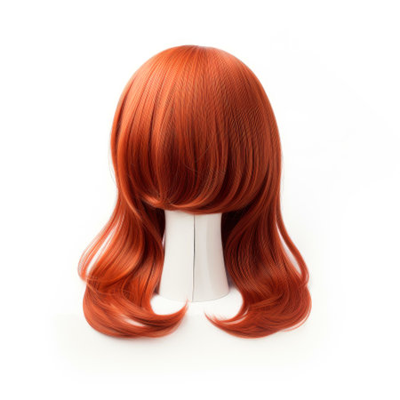 Hair wig over the plastic mannequin head isolated over the white background, mockup featuring contemporary women hairstyles, Generative AI illustration