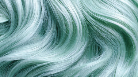 Captivating close-up of soft, light green hair texture showcasing elegant waves and glossy shine, ideal for fashion and beauty-themed projects.