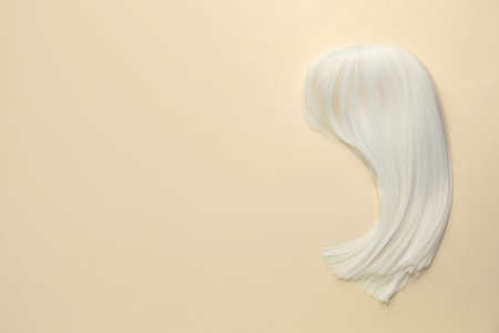 Different type of hair blonde, brunette, wavy on beige background, top view. Spa concept for root and tip care