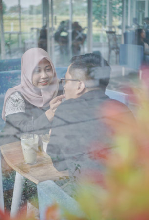 Asian couple relaxing in a coffee shop