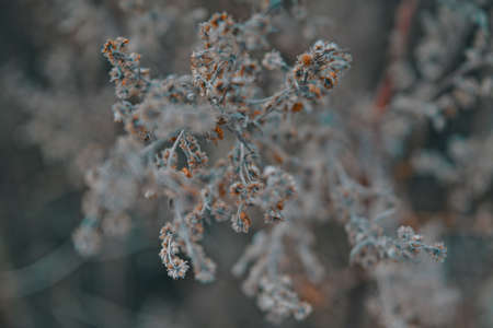 red fruit of rosa canina in winter wrapped by a plant with white fluff