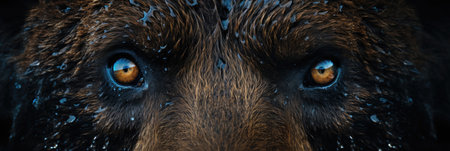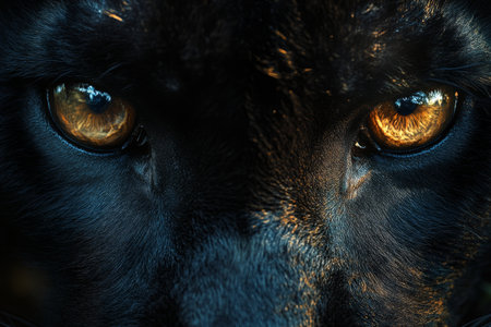 This stunning close-up image showcases the intense gaze of a dark-colored wolf, emphasizing its striking amber eyes and detailed fur. Perfect for nature enthusiasts.