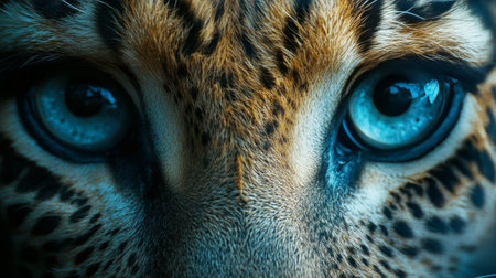 A striking close-up captures the intense gaze of a leopard, highlighting its golden eyes and the intricate pattern of its spotted fur. The image evokes a sense of wild beauty and power.