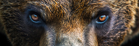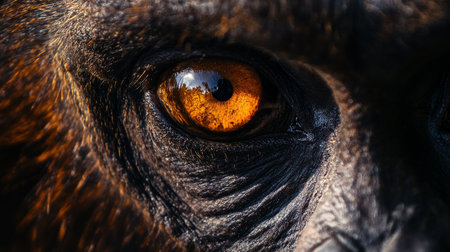 Close-up of a gorilla's captivating amber eye, showcasing the intricate details of its iris and surrounding fur