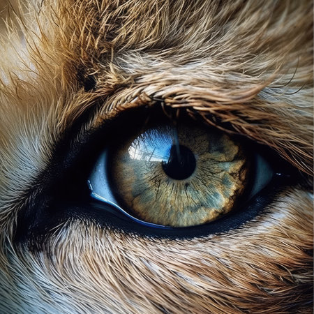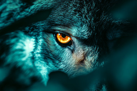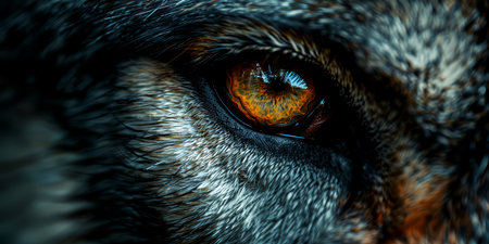 Majestic Wolf Eye in Close Up Captivating Wildlife Highlighting Intense Amber Gaze.