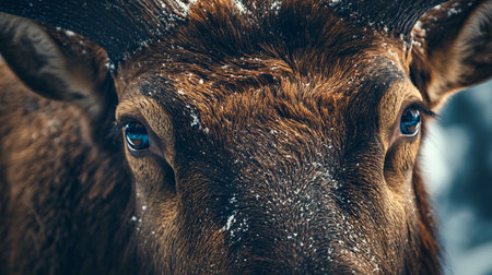 This close-up captures the face of a reindeer, highlighting its soft fur and striking eyes. It provides a glimpse into the beauty and gentleness of this majestic animal.