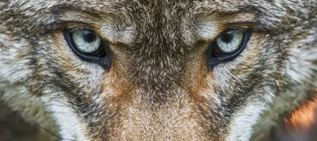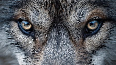 a Gray Wolf through this compelling close-up shot, capturing the intense gaze and intricate details of its face. A mesmerizing documentary photo that brings the elusive world of wolves to life