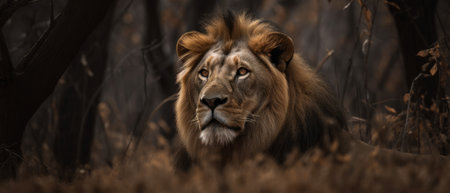 Close up of a lion in the forest