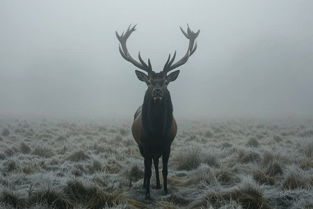 Majestic Elk Stands Tall in Misty Meadow