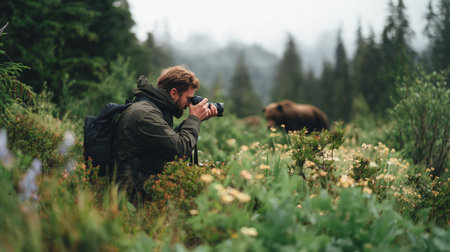 Wildlife photographer captures bear in forest during cloudy morning