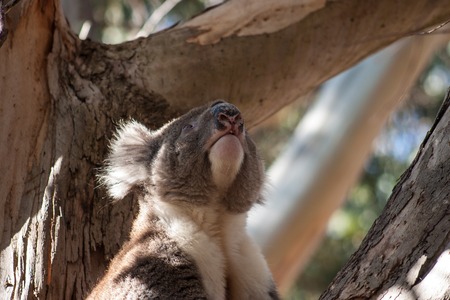 Koala on eucalyptus tree in Australia, looking up