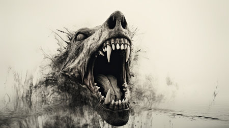 surreal realism antique black and white minimalism aggressive dog head, generated by AI. High quality photo