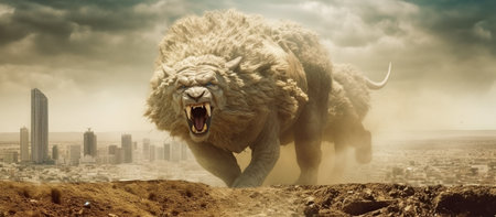 Monstrous sandstorm in the shape of a giant angry lion Generative AI