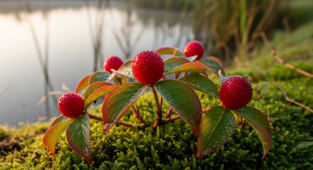 This image doesn't depict a traditional Easter scene, but it beautifully captures renewal in nature The vibrant red berries and dewy leaves symbolize new life, mirroring spiritual renewal and nature's cycle It's a visual metaphor for rebirth and fresh beginnings AI Generative