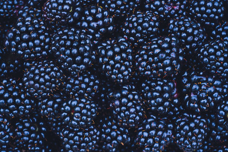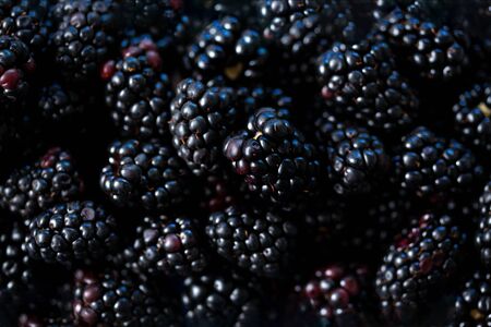 Freshly picked home grown blackberry as natural background with copy space for text. Healthy eating and dieting concept. Organic superfood snack. Summer berries background
