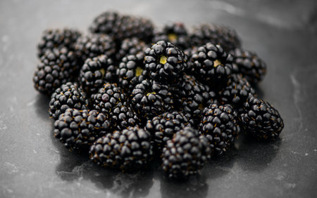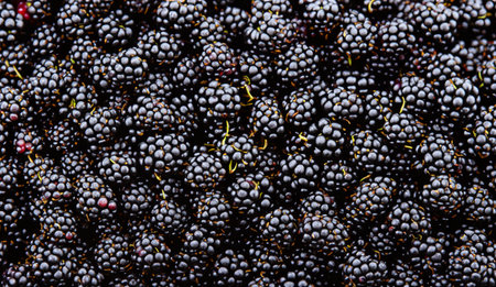 Beautiful organic background of freshly picked blackberry created with Generative AI technology