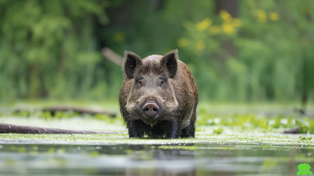 A breathtaking shot of a wild boar his natural habitat, showing his majestic beauty and strength.