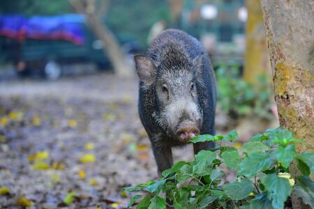 Wild boar walking in the forest. Wild boar in the forest.
