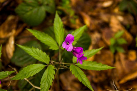 close-up of a blue blossoming flowers of the five-leaflet bitter-cress (cardamine pentaphyllos) in the forest glade