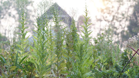 Beautiful green background cannabina, a perennial herbaceous plant in a meadow in summer