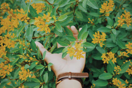 Beautiful yellow Tembusu flowers bloomig (Fagraea fragrans Roxb)