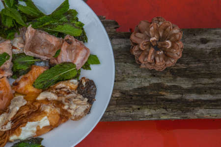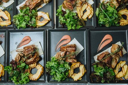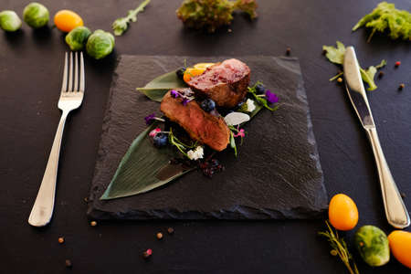 The food in the restaurant. Food styling and restaurant meal serving. Gourmet restaurant menu concept. Creative stylist restaurant