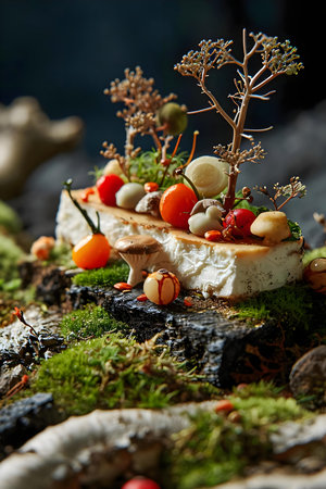 Close-up illustration of food photography, showcasing plating, lighting, and culinary artistry. Ideal for discussions on capturing food images, presentation, and culinary aesthetics.