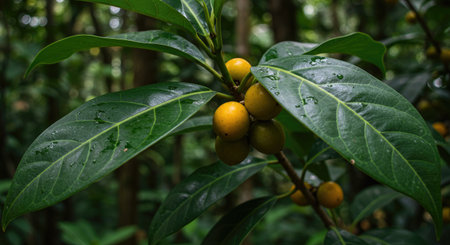 Coffee tree with fruits in the rainforest, Thailand.
