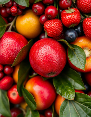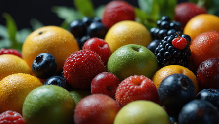 Closeup of fresh ripe fruits and berries texture background.