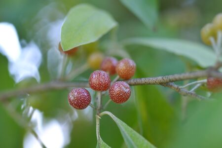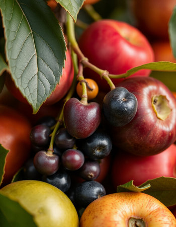 Fruits and berries on the branches of a tree close-up