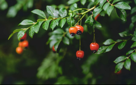 A close up of berries on a tree branch, AI