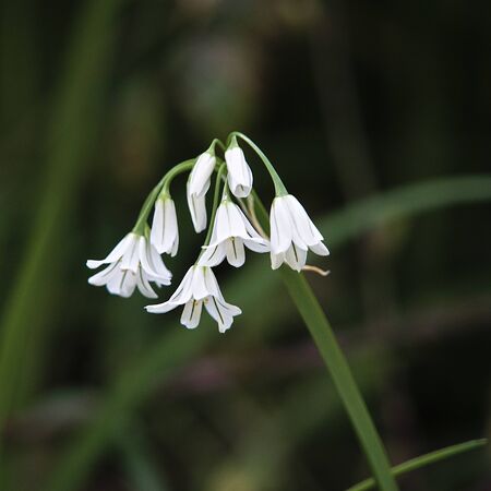 closeup of three-cornered leek flowers