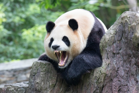 a panda with its mouth open