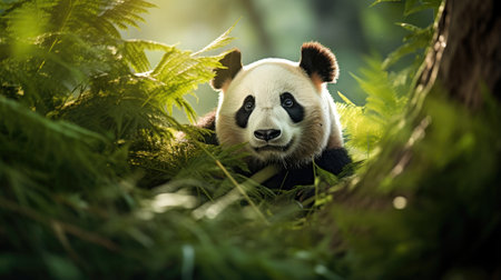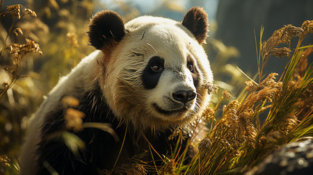 Exquisite panda roaming freely in its lush natural environment.