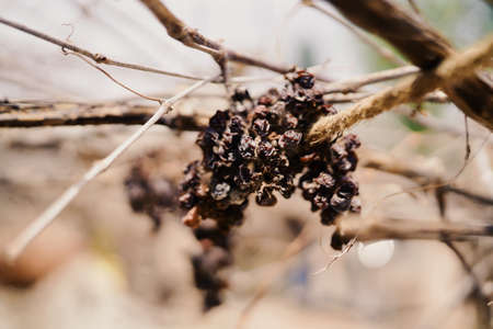 Dried grapes on the vine rack