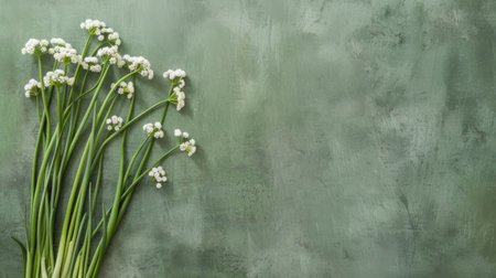 The Garlic chives in spring, fresh green leaves, soft sunlight filtering, vibrant atmosphere full of vitality, natural textures, serene mood P.
