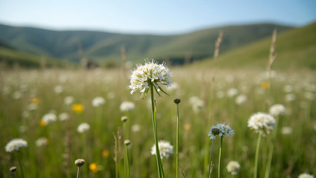 close up of flowers in the fields in the countryside