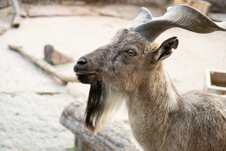 Mountain goat portrait in the zoo. close-up.