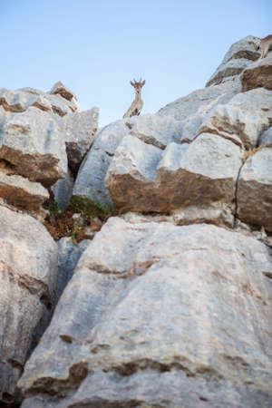 Wild goat on the rocks of La Sierra Del Torcal de Antequera National Park, Malaga, Spain