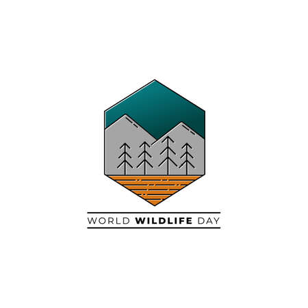 World Wildlife Day lettering composition with mountains. Vector color illustration.