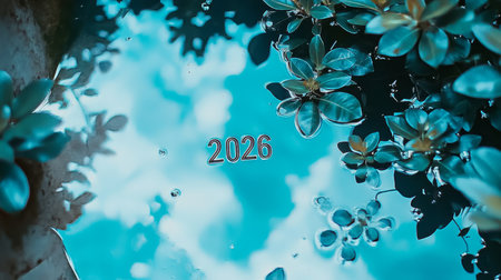 A vibrant design featuring the number 2026 made from various green leaves, symbolizing growth and renewal. Perfect for nature lovers and New Year themes.