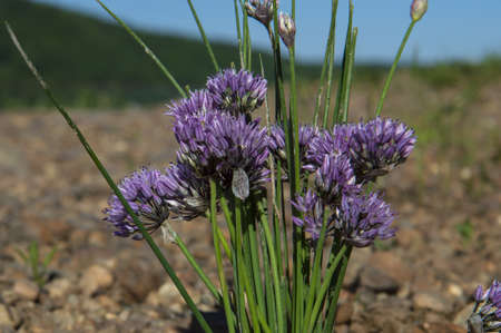 wild onion blooms on the shore